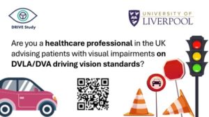 The University of Liverpool is carrying out research to determine healthcare professionals understanding of vision standards and how they are shared with patients, to address any future outstanding training/support needs. The research team are keen for range of professionals, regardless of level of understanding of the vision driving guidance, to complete a short online survey. To take part, or find out more visit https://bit.ly/42cMUX5 before 30th April 2025. All responses will be kept completely confidential.