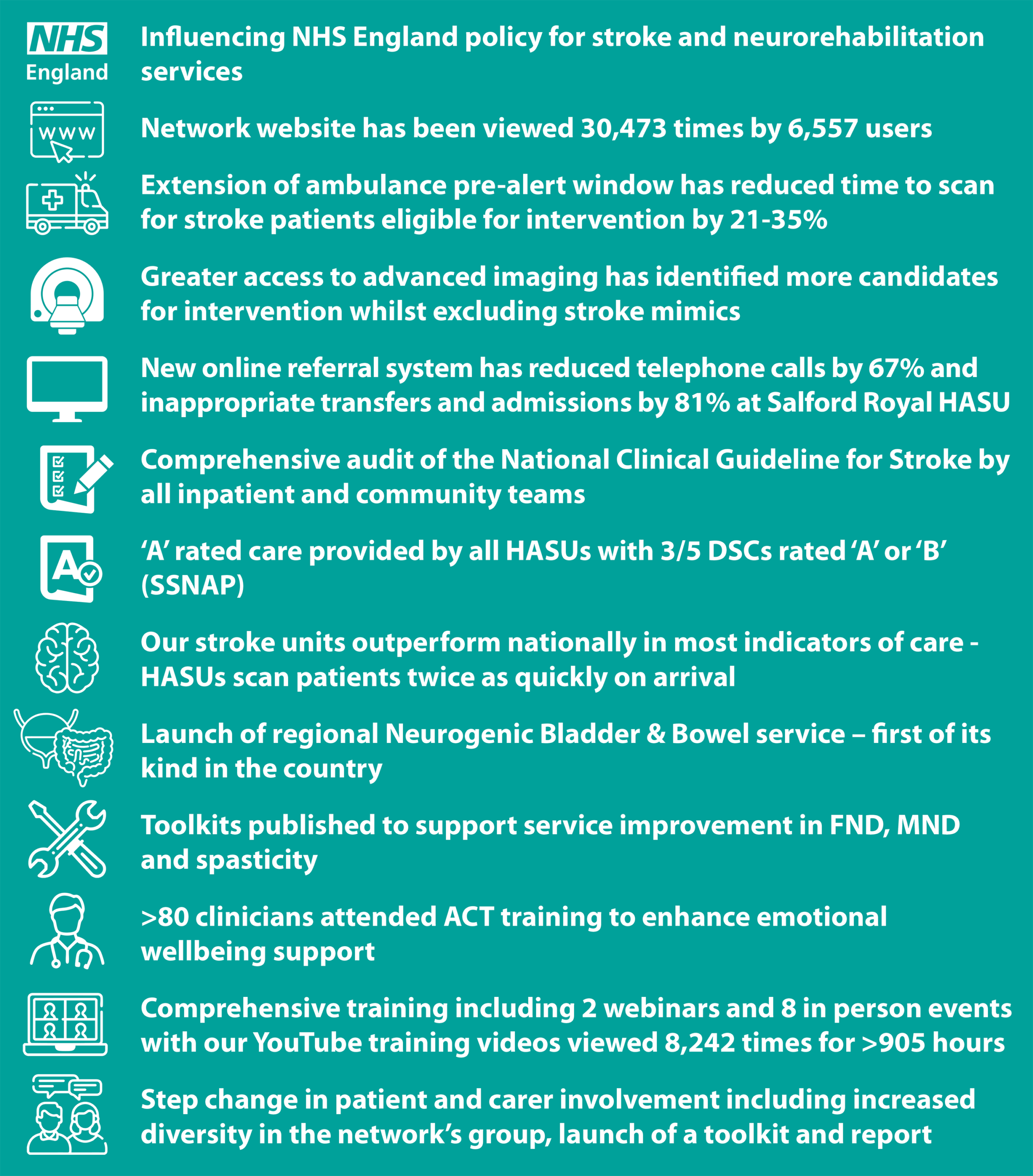 | Imaging | Support implementation of national imaging pathway for stroke including roll out of CT Perfusion and rapid MR at HASUs | Chris Ashton | HASU Forum | 31/12/25 |