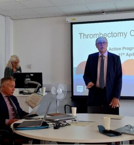 On Friday 11th April, a delegation from NHS England (NHSE) returned to the North West to review progress in providing 24/7 mechanical thrombectomy to all residents. The surgical procedure removes large blood clots and has been proven to reduce disability and save lives after a stroke.